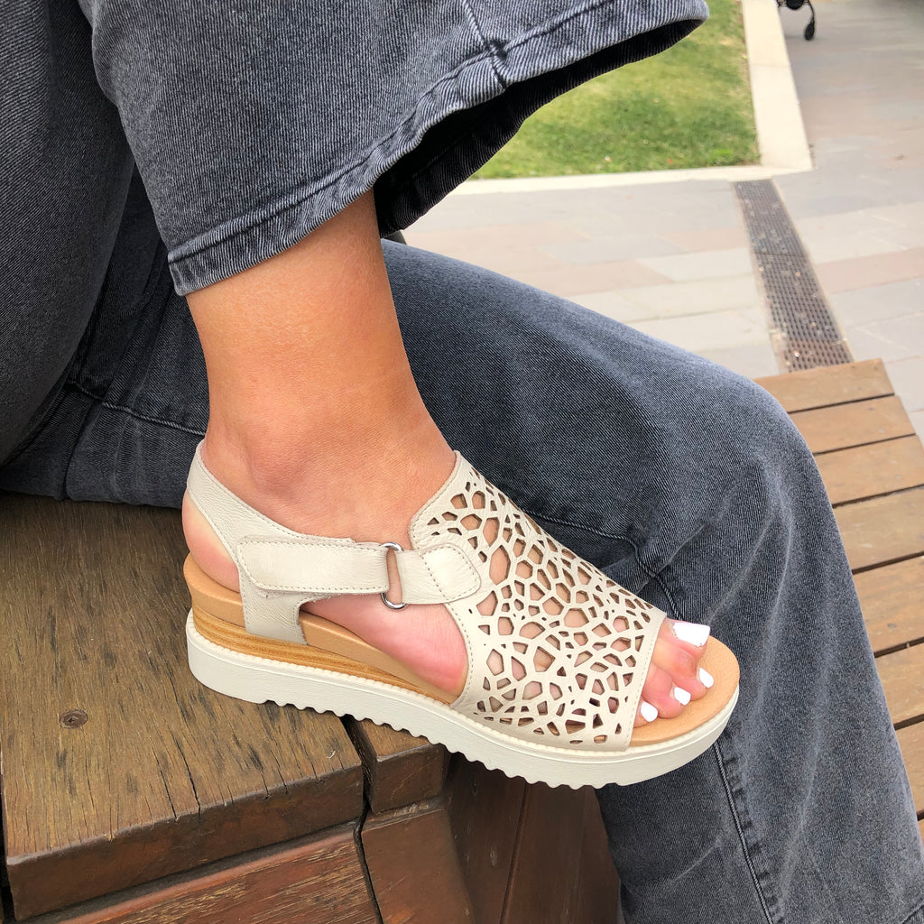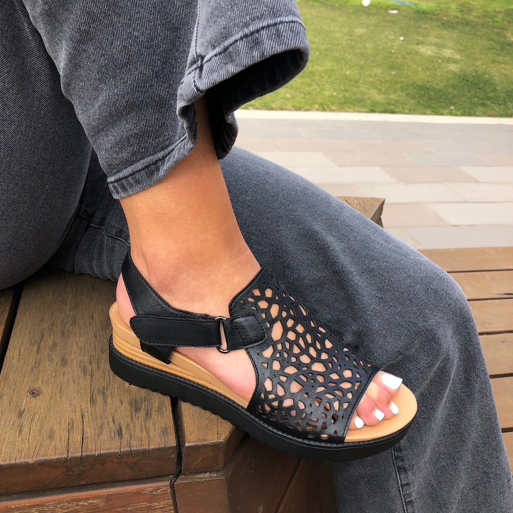 Leather sandals with chic laser-cut details, ANSH by Django & Juliette is a contemporary summer essential, resting on a sporty flexible sole.
