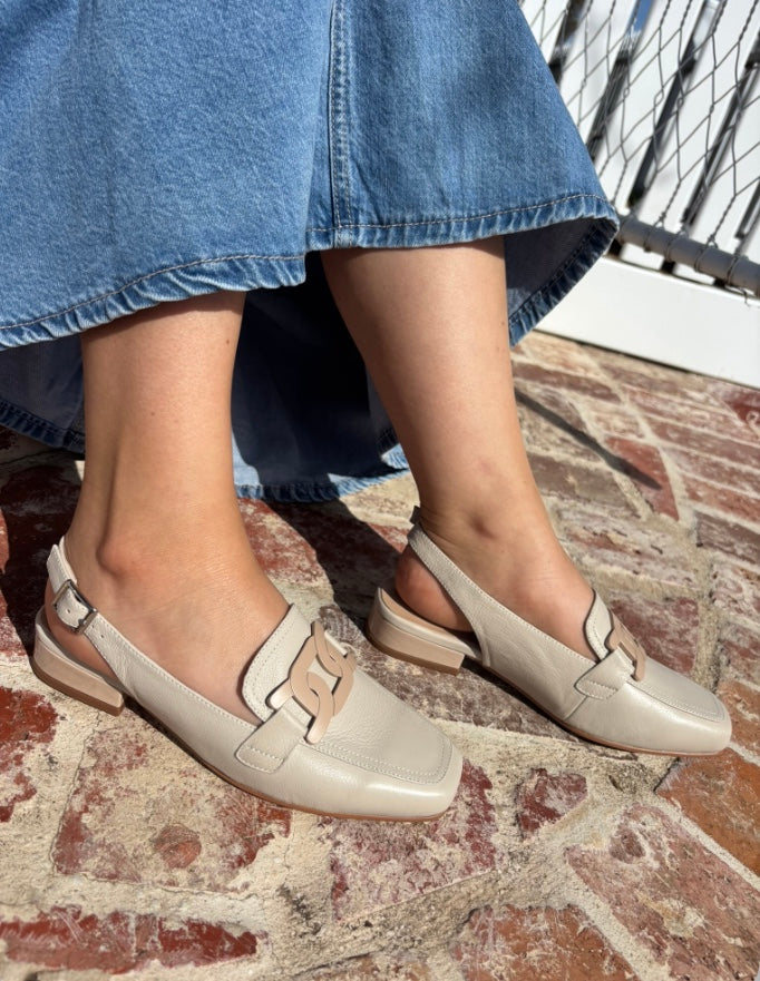 Elasticated leather heel strap