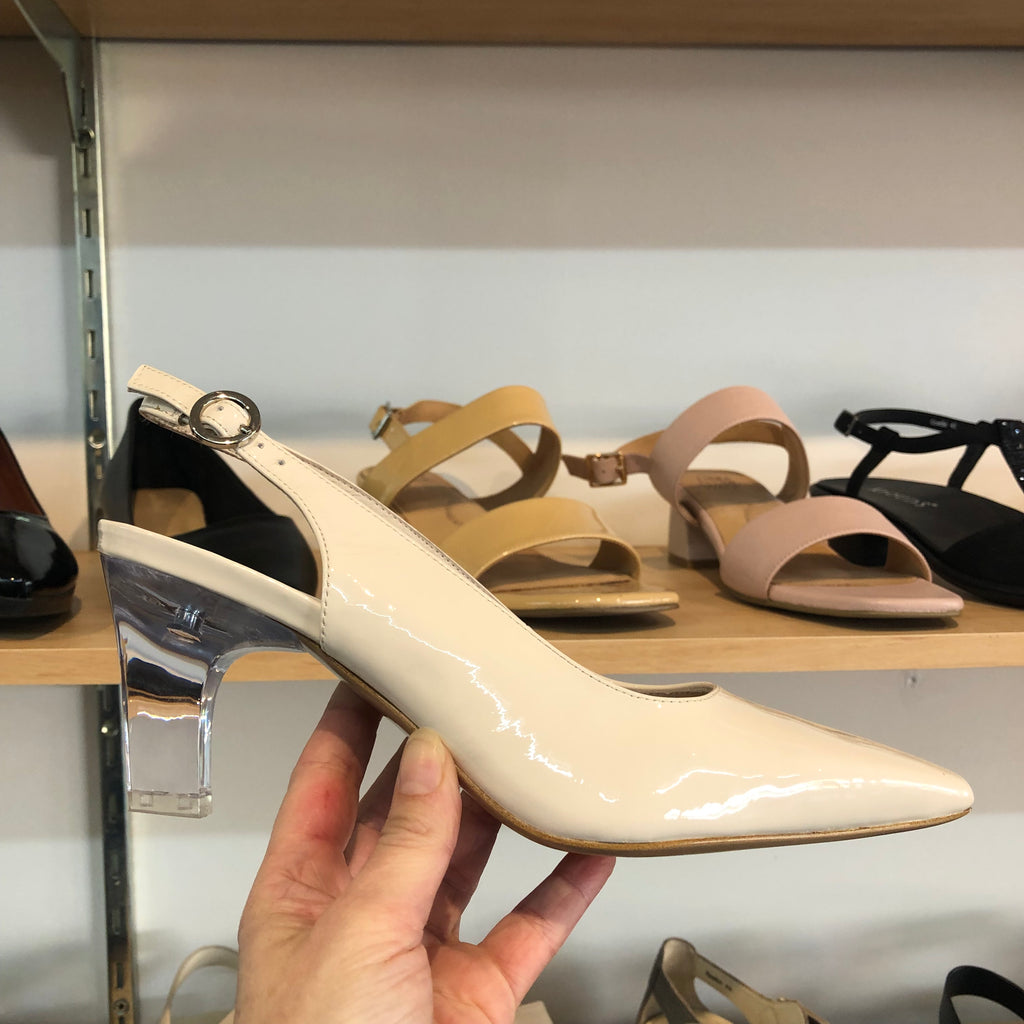 Elevate your wardrobe with the Django & Juliette Kordale slingback, a flawless blend of timeless style and modern design. Featuring a sleek patent finish in black or ivory, this silhouette is paired with a distinctive translucent heel, offering a sophisticated, chic edge. Perfect for both day and evening wear, the Kordale ensures lasting elegance with expert craftsmanship and refined details.