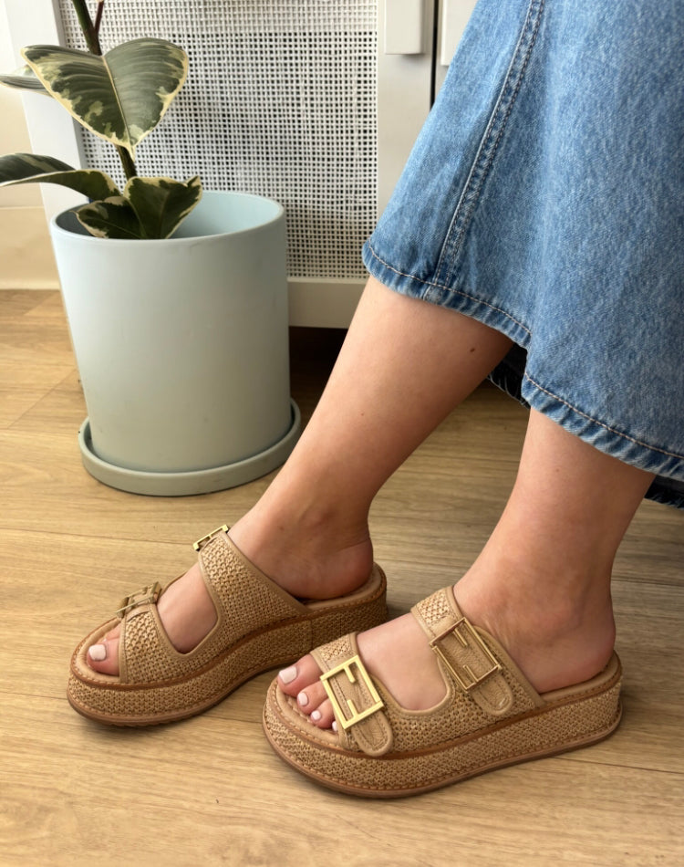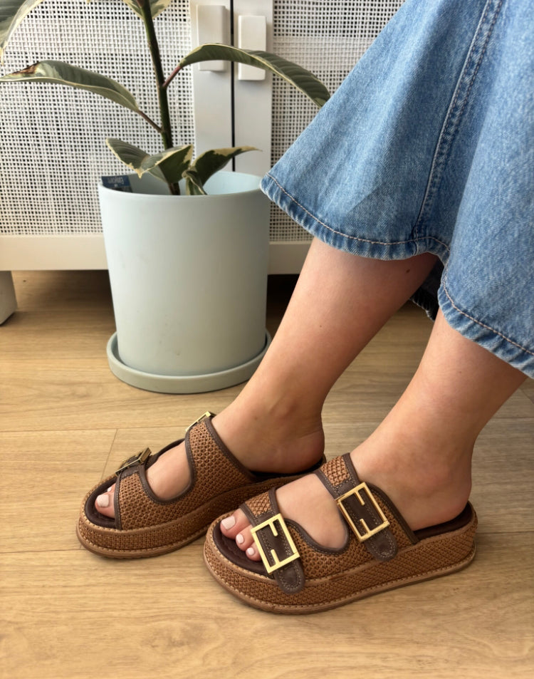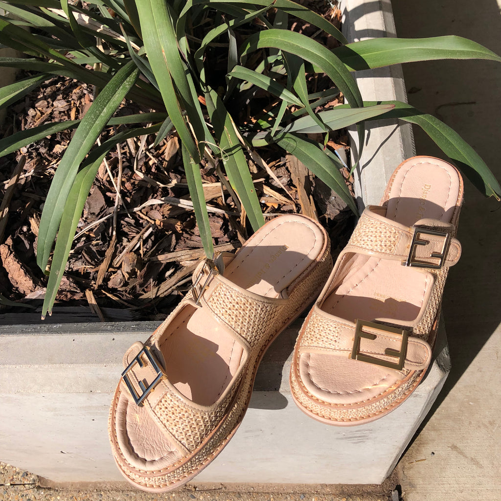 These leather slides are a classy warm-weather essential from Django & Juliette. VEXTA's woven texture and subtle hardware gives it slip-on appeal with all of your favourite summer ensembles.