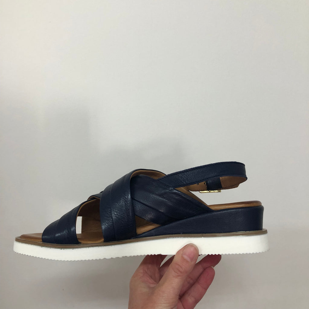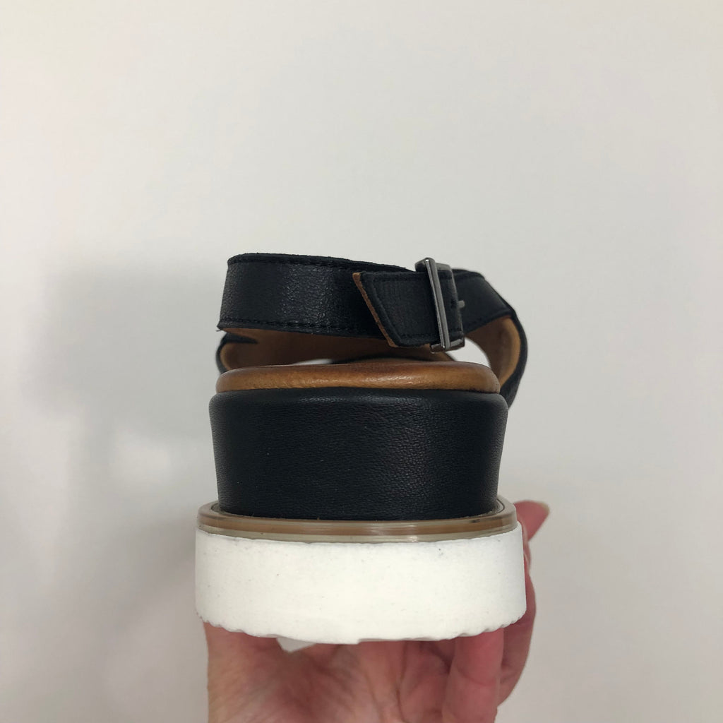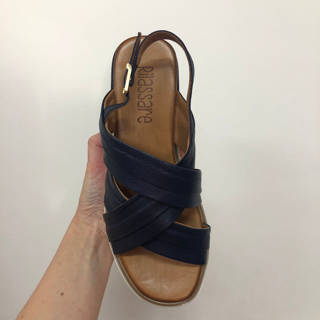 Crafted from premium full-grain leather, the Rilassare Treble sandal ensures durability and a refined look. Designed for comfort during long walks, it features a secure buckle fastening and provides excellent coverage for stability. The slight wedge adds subtle height without compromising support, making it an ideal choice for those seeking both style and comfort in a versatile leather sandal. Available in Black, Coconut, and Navy.