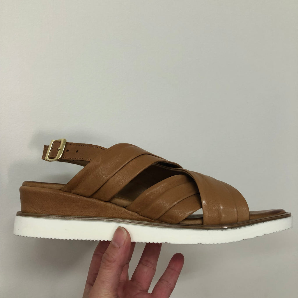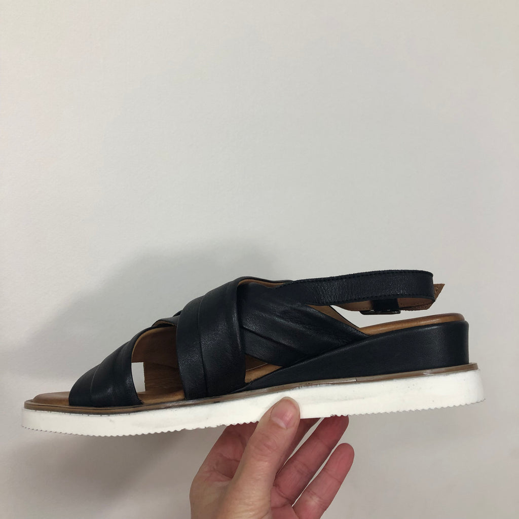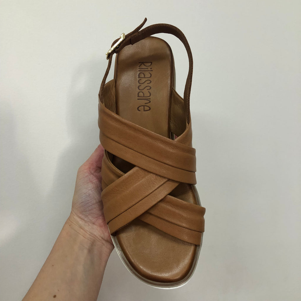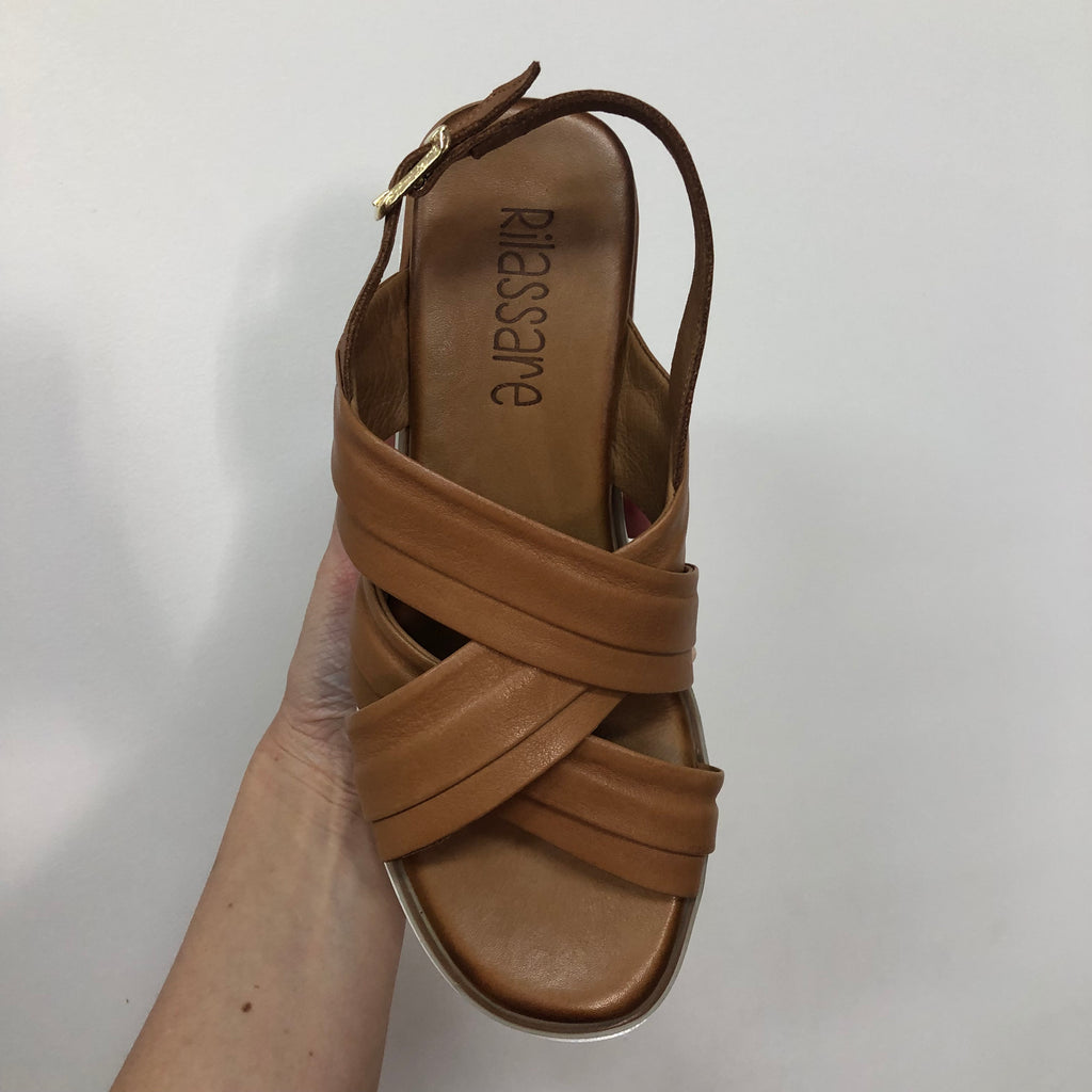 Crafted from premium full-grain leather, the Rilassare Treble sandal ensures durability and a refined look. Designed for comfort during long walks, it features a secure buckle fastening and provides excellent coverage for stability. The slight wedge adds subtle height without compromising support, making it an ideal choice for those seeking both style and comfort in a versatile leather sandal. Available in Black, Coconut, and Navy.