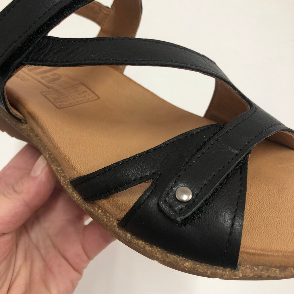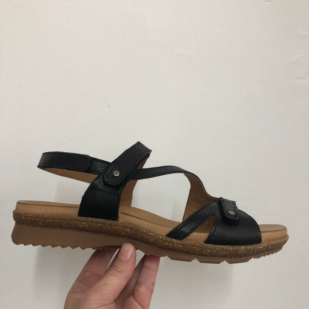These Sala Avon sandals in black and coconut leather are crafted in Turkey for quality and durability. Designed with lightweight materials and an adjustable Velcro fastening, they provide a secure fit tailored to your foot. Their ergonomic construction ensures all-day comfort, making them ideal for warm weather wear.