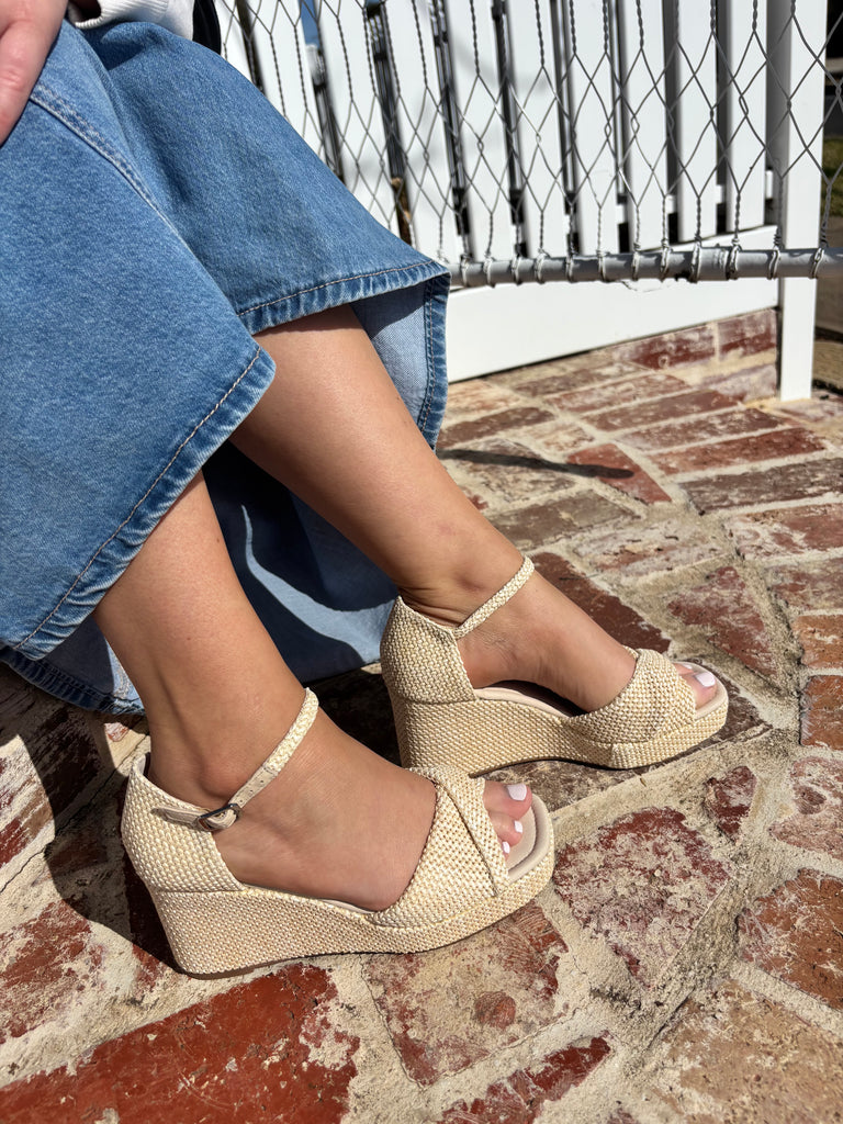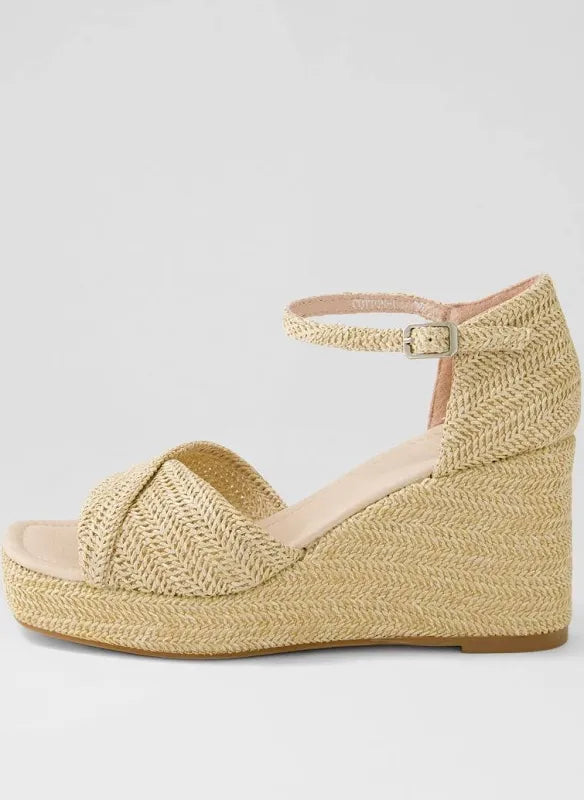 Start a spring sensation with these woven raffia wedges by Django & Juliette. Exuding an effortless boho aesthetic, COTTON is an essential from brunch to bar.